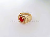 Anillo Caballero de Lujo - 103925 - Diseño Clásico CZ Roja Oro Laminado 18K